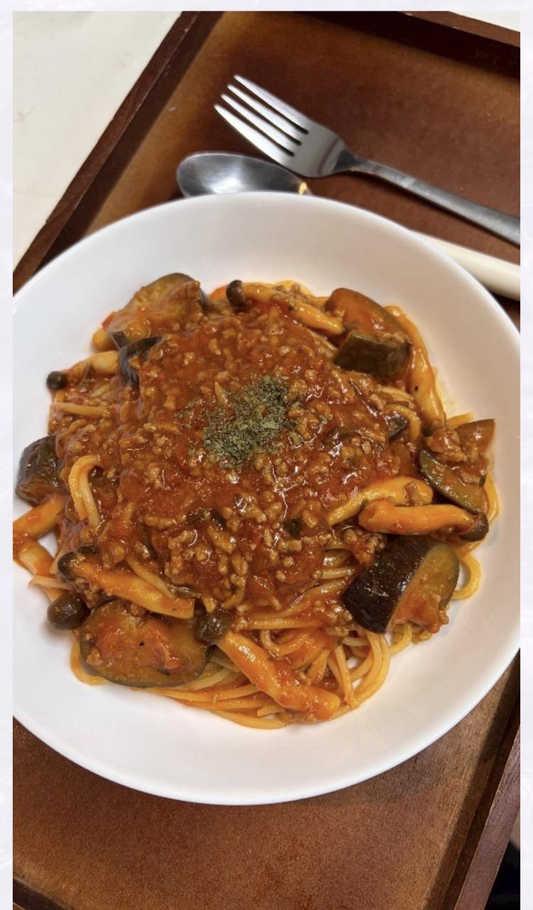 いつもはオイルパスタが多いけど、久しぶりにひき肉を使ったパスタが食べたくて…笑